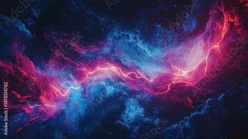Cosmic Nebula, vibrant swirling colours, electric currents