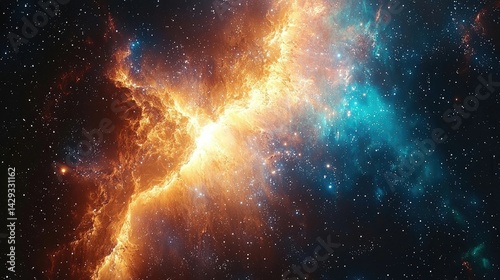 Cosmic Nebula with Fiery Orange and Teal Hues