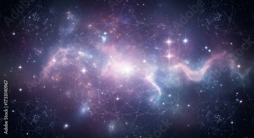 Cosmic nebula with stars and geometric patterns space galaxy