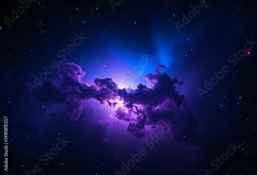 Cosmic nebula with vibrant blue and purple hues, glowing stars, and stardust , sparkle, shine