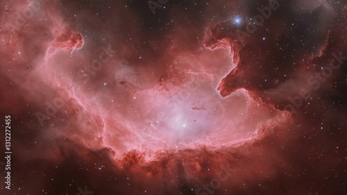 Cosmic Red Nebula with Pink Hues and Distant Stars