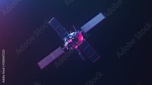 Cosmic Sentinel: A detailed, high-tech satellite floats serenely in the vast expanse of space, its solar panels reflecting the distant light of galaxies. The image evokes a sense of innovation.