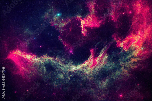 Cosmic Starry Deep Space, Colorful Nebula, Universe Background Noise Radiation. Beautiful science fiction Landscape.