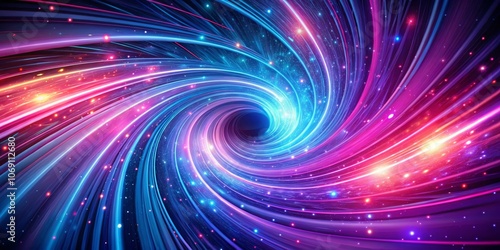 Cosmic Vortex A swirling symphony of vibrant blue and pink light streams converging towards a black hole, punctuated by twinkling stars and glittering dust. Abstract, Space, Galaxy