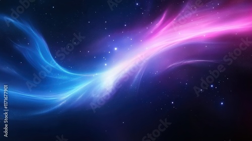 Cosmic waves, vibrant aurora, deep space, swirling nebula, neon colors, blue and pink gradient, celestial energy, starry background, abstract galaxy, fluid motion, ethereal atmosphere, luminous ribbon