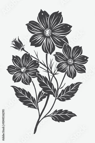 Cosmos Branch with Flowers Silhouette Vector Illustration of Elegant Floral Design for Digital Artworks and Projects