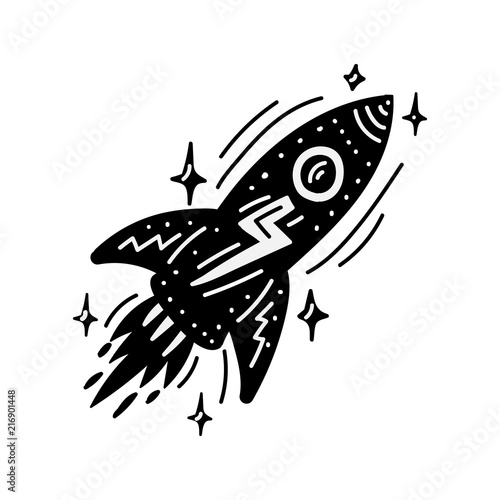 Cosmos print. Black vector illustration. Nursery poster