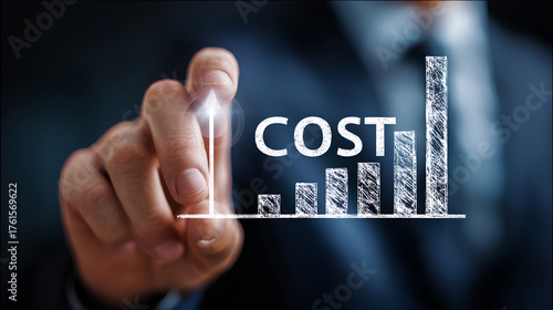 Cost reduction business finance concept. Budget management and cost management. Costs cut, and costs optimization business. Businessman with virtual icon.
