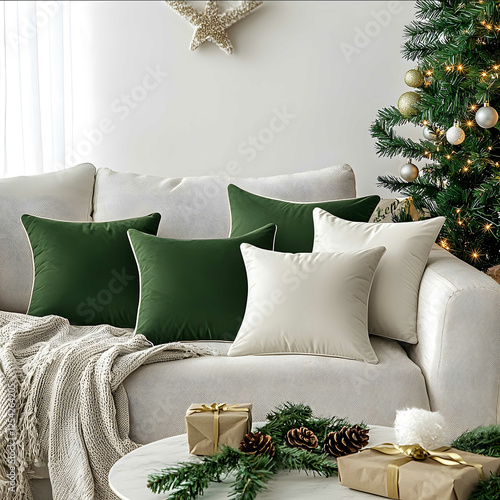 Cotone fabric plain simple green and white colors Cushions cover with full sofa christmas background long angle without any edge