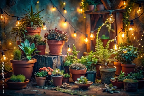 Cottagecore Earthy Plant Pots: Night Photography Backgrounds
