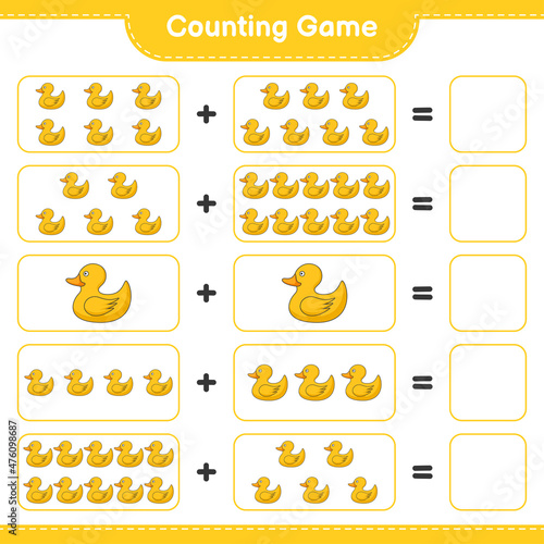 Count and match, count the number of Rubber Duck and match with the right numbers. Educational children game, printable worksheet, vector illustration