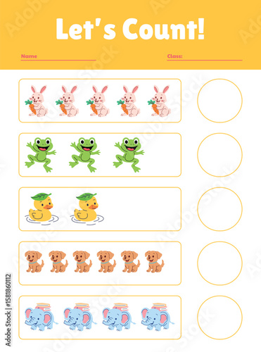 Counting exercise worksheet for kids designed to teach young children counting skills with illustrations.