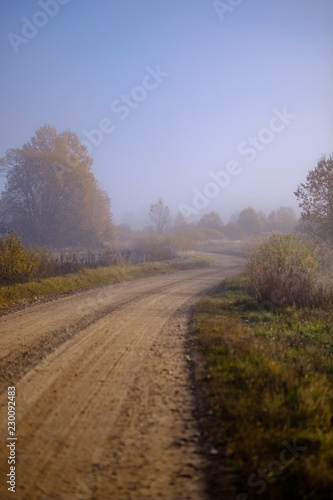 country gravel road in autumn colors in fall colors