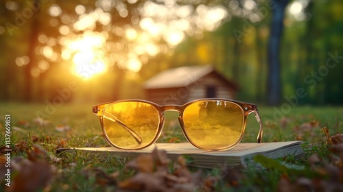 Countryside Reading: Sunglasses on Guidebook. Generative AI