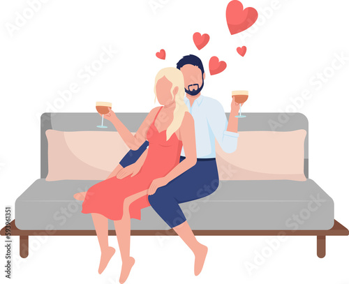 Couple celebrating anniversary semi flat color raster characters. Full body people on white. Romantic simple cartoon style illustration for web graphic design and animation