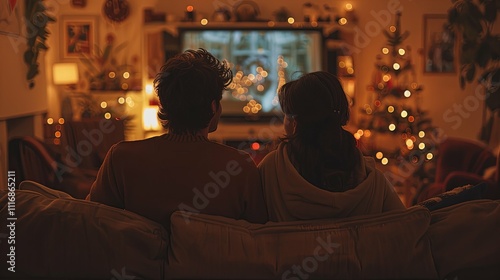 Couple Cozying Up on the Couch Watching a Movie on Christmas Eve