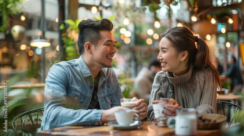 Couple enjoying coffee together in a cozy coffee shop