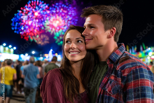 Couple Enjoying Fireworks Display at Night Event Celebration