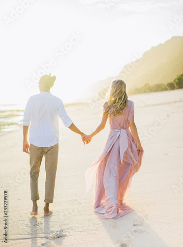 Couple holding hands on sunny beach