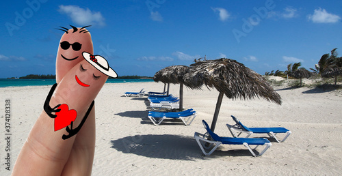 Couple in love on a honeymoon on a tropical white sand beach in Cuba Varadero