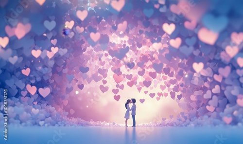 Couple kissing in a heart-shaped cloud.