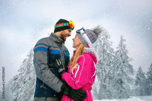 couple of snowboarders having fun on the mountain