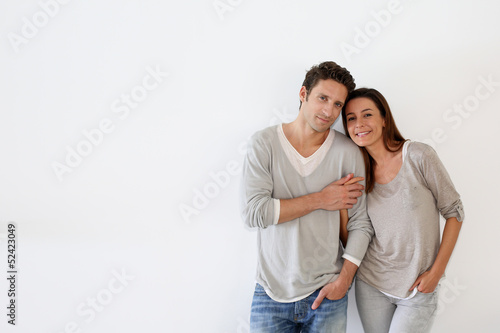 Couple standing on white background