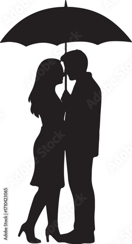 Couple Under Umbrella Silhouette – Romantic Love Vector