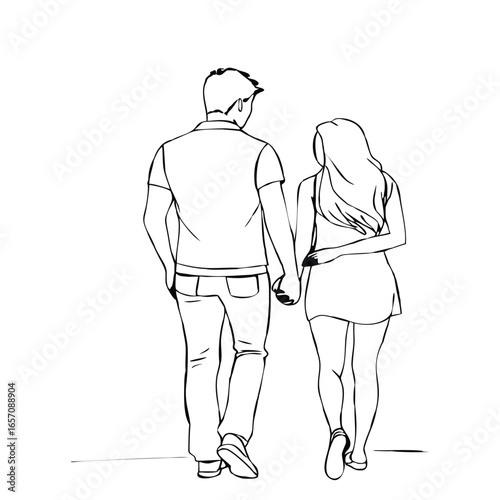 Couple with Dog Walking Away