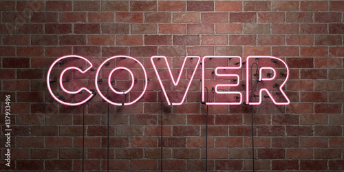 COVER - fluorescent Neon tube Sign on brickwork - Front view - 3D rendered royalty free stock picture. Can be used for online banner ads and direct mailers..