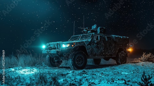 Covert Military Operation Under Starry Night Sky with Vehicle