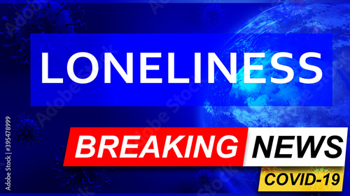 Covid and loneliness in breaking news - stylized tv blue news screen with news related to corona pandemic and loneliness, 3d illustration