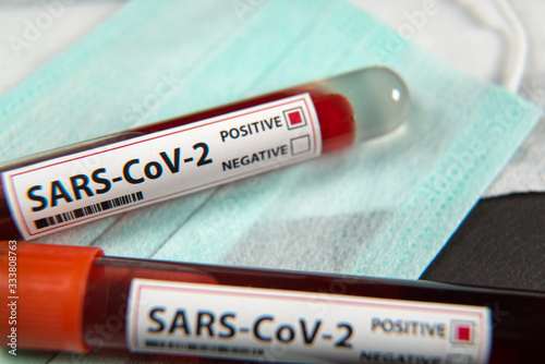 Covid-19 infectious disease, coronavirus a global threat sars-cov 2 blood test on the mask