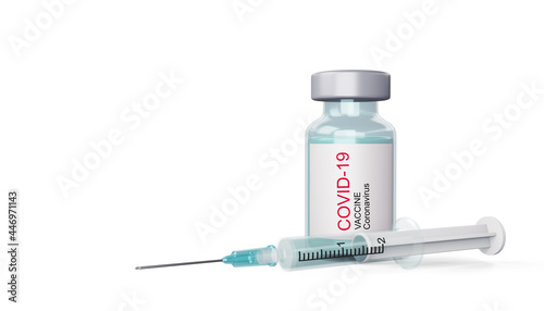Covid-19 vaccine bottle with syring, coronavirus vaccine, 3d rendering illustration