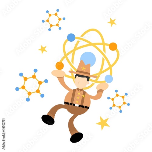 cowboy america and atom chemistry sign cartoon doodle flat design style vector illustration