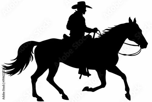 cowboy and horse running silhouettes , cowboy riding a running horse, Western riding discipline Reining vector collection