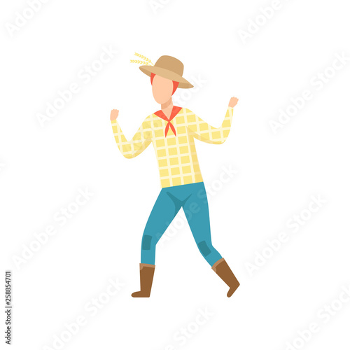 Cowboy Dancing at Folklore Party, Festa Junina Brazil June Festival Vector Illustration