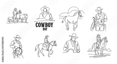 Cowboy illustrations depicting various activities and styles