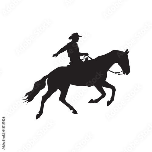 Cowboy on Horseback Silhouette Vector Clipart – Black Design on White Background