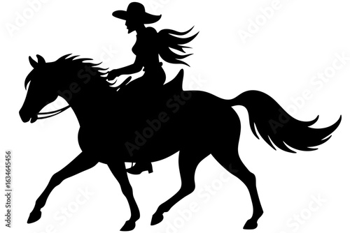 cowgirl and horse silhouette vector illustration, horse black symbol