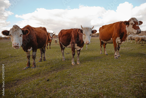 cows and bulls graze in the meadow