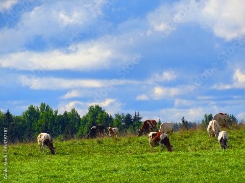 cows graze in the meadow