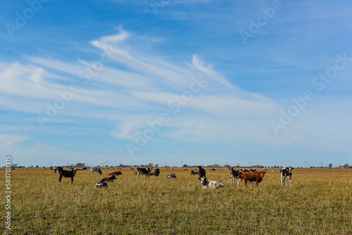 Cows grazing in the field, in the Pampas plain, Argentina