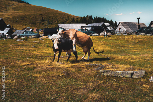 Cows in Mountain Village, Summer Rural Bosnia