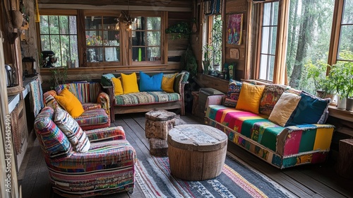 Cozy and Colorful Rustic Living Room with Vintage Accents and Natural Light
