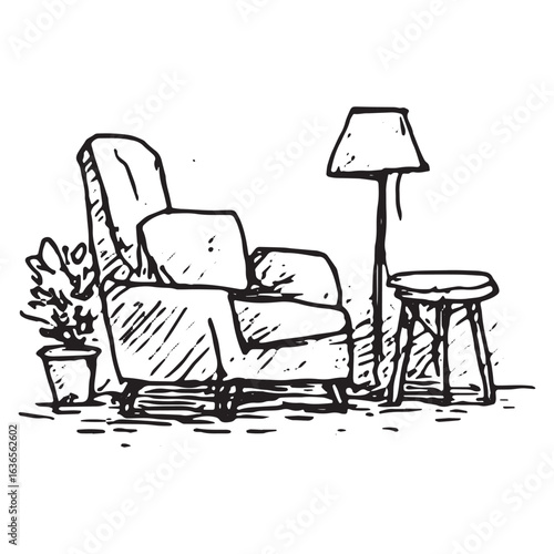 Cozy Armchair Floor Lamp Side Table Sketch