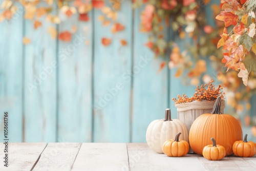 cozy autumn scene featuring pumpkins and colorful leaves, perfect for seasonal decor. warm colors evoke sense of harvest and celebration
