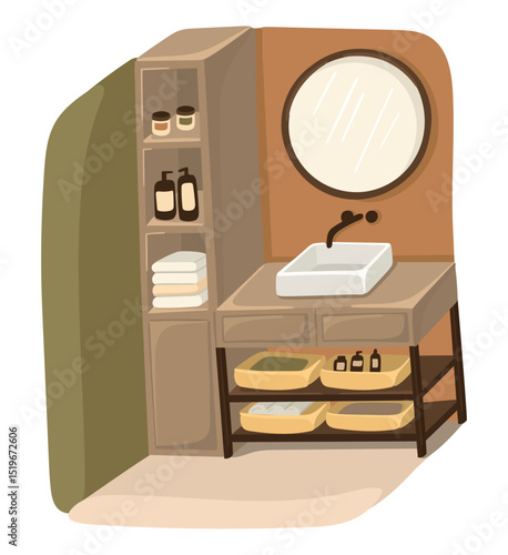 Cozy bathroom corner. Home interior. Vector.