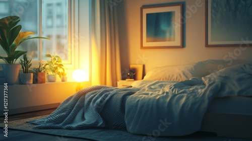 Cozy bedroom with warm blankets for peaceful sleep