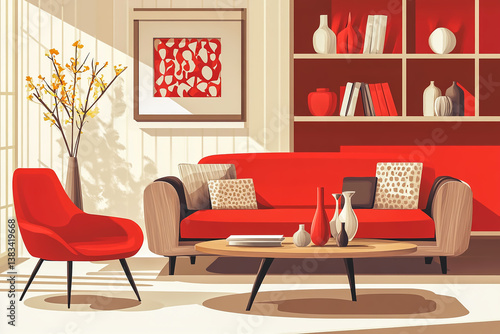 Cozy Boho Living Room with Elegant Red and Beige Design Elements